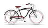 Beachcruiser-modelstalen herenkader, 6 versn. Shimano Tourney Revoshift, cassettetrapas, alu V-brakes en remgrepen, alu naven, alu dubbelwandige velgen, witte 26 x 2.125 buitenbanden, alu stuurpen, Selle Bassano zadel.